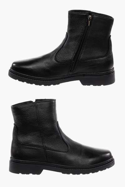 Это утепленные ботинки. Производитель адаптировал их к суровой русской зиме. Они произведены из нат.кожи, а подкладка из шерсти. Их отличает широкая часть носка и цельная подошва. Орто-ботинки - это обувь, которую можно носить долгое время, гулять по улице зимой, не боясь устать и замерзнуть, к тому же ботинки снабжены зимним протектором, а значит их подошва не скользящая Зимние ботинки снабжаются стелькой анатомического типа с меховой верхней частью. Ее, при необходимости, можно вынуть.